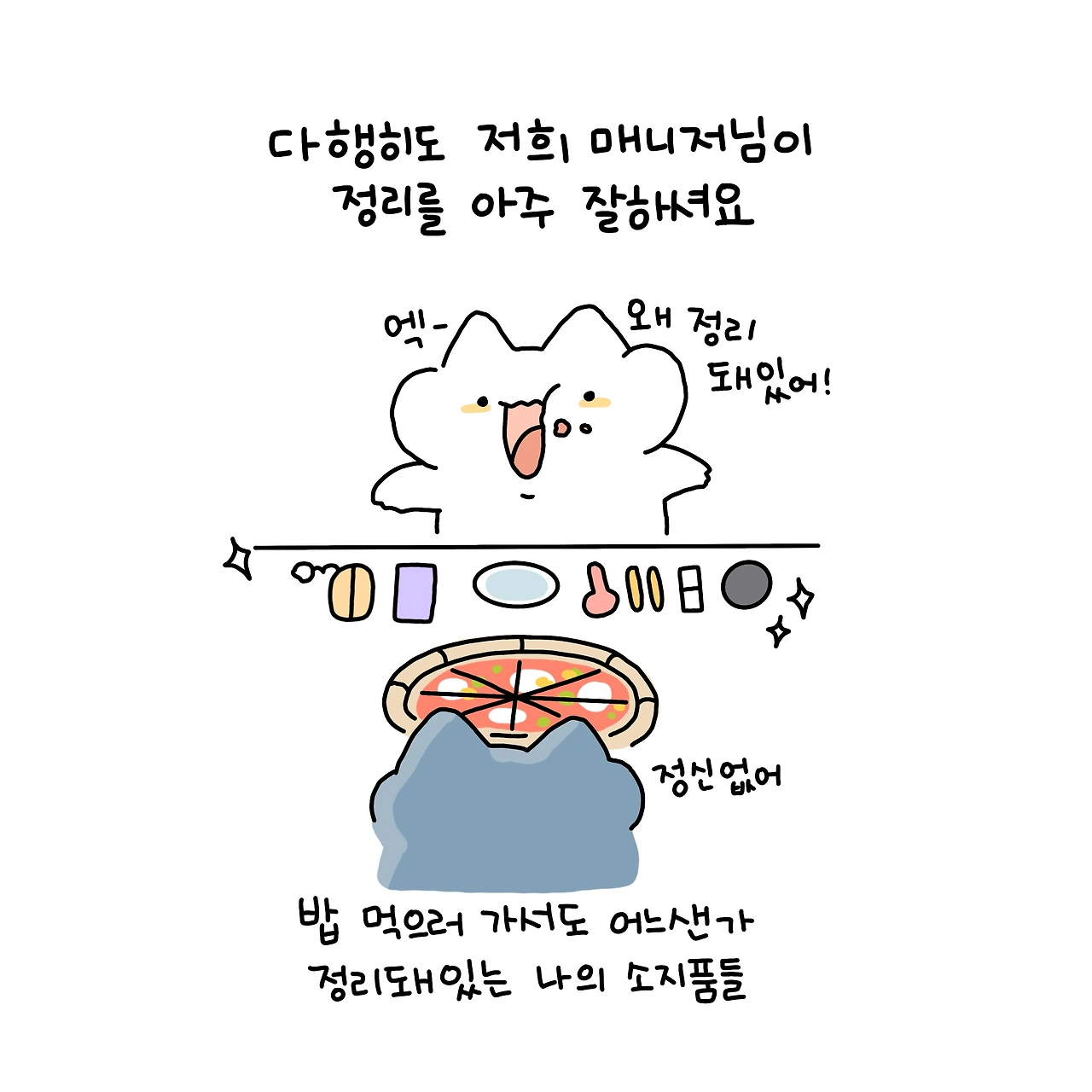현상 유지를 하려고 노력하고 있지만.. 매니저님 안 오신 지 며칠 되었는데 벌써 전쟁터...