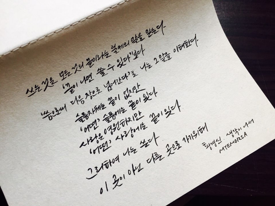 : 몌모리아의 캘리그라피와 생각 조각