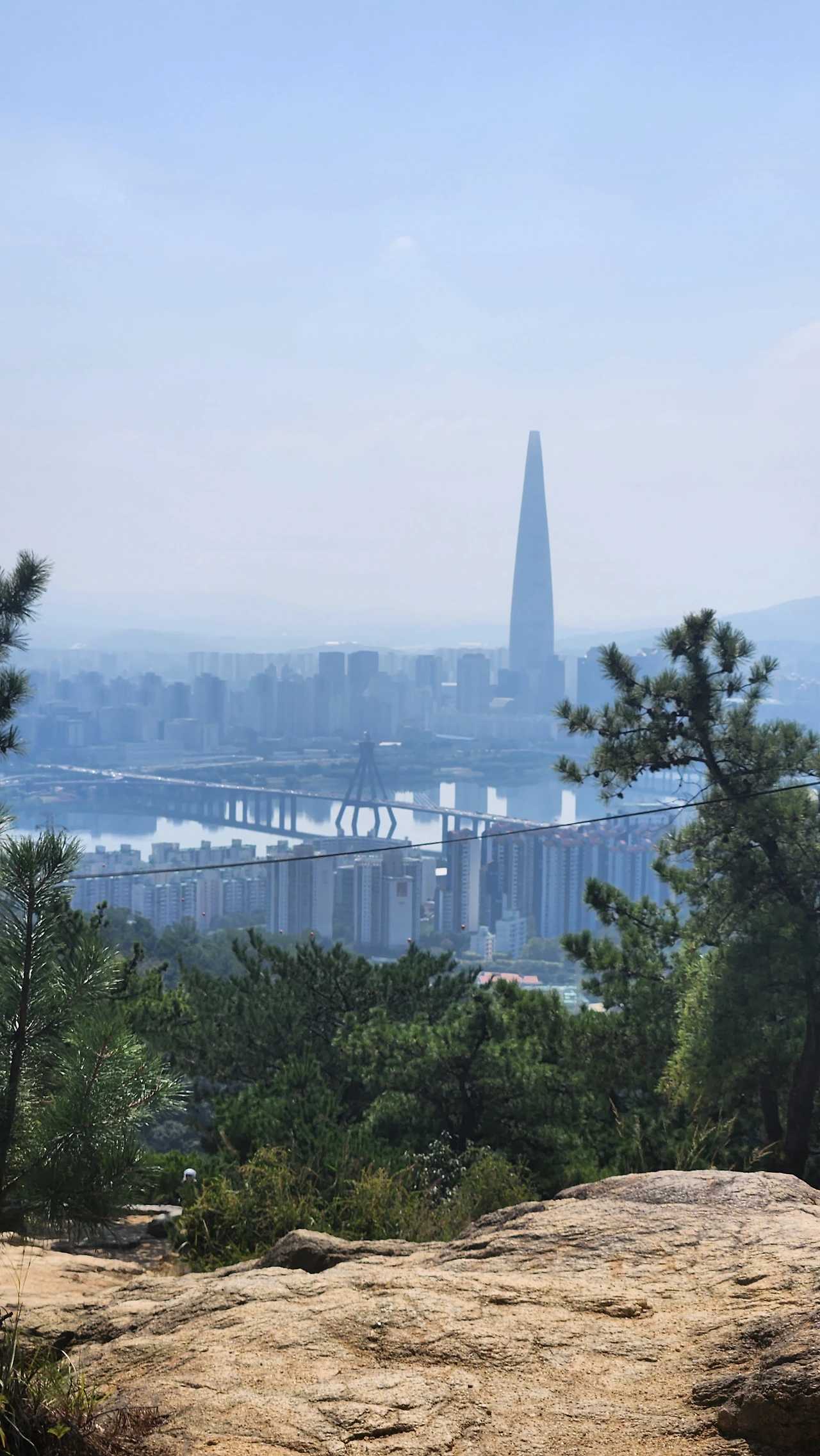 아차산에서 바라본 한강과 롯데월드타워
