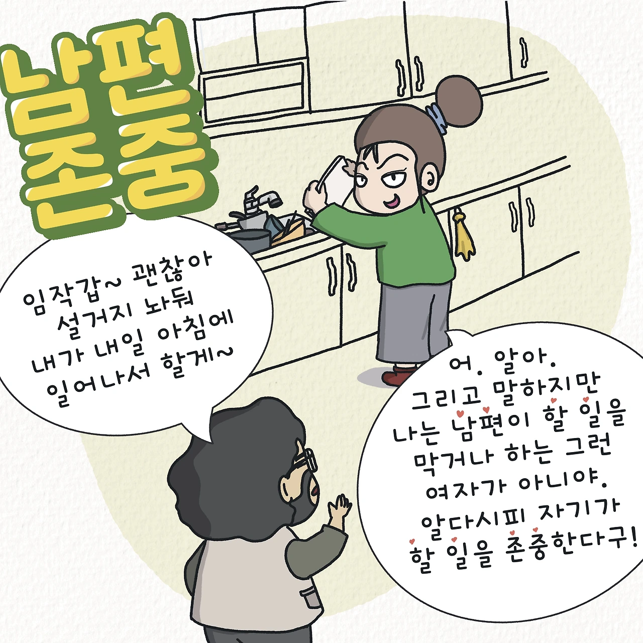 그런 여자가 아니야. 자기가 할 일을 존중한다고. 알지? 나는 자기편이야!”