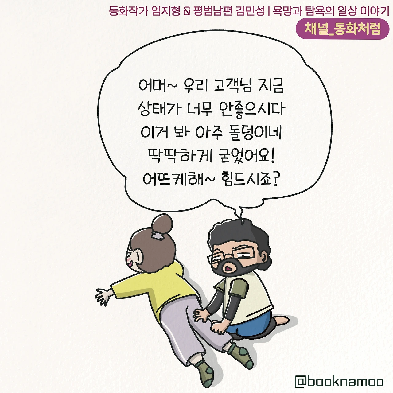 “어머~ 우리 고객님. 지금 상태가 너무 안 좋으시다. 이거 봐. 다 굳었네 굳었어. 어뜨케해~~
