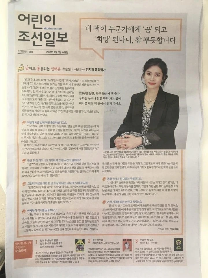 어린이 신문 1면에 임작갑 인터뷰가 났던 날. 우리는 좀 까불었다. 임작갑은 ‘초통령 작가’라는 단어가 참 좋았던 모양이다. 그것이 수식어에 불과하다고 할지라도, 누군가에게 그렇게 불리고 스스로를 그렇게 생각해볼 수 있는 기회는 흔치 않다. 우리는 그렇게 낄낄거리고, 과하게 웃고, 놀았다. 뭐 바닥에 침 튀는 정도야 얼마든지 닦으면 될 일이었고.