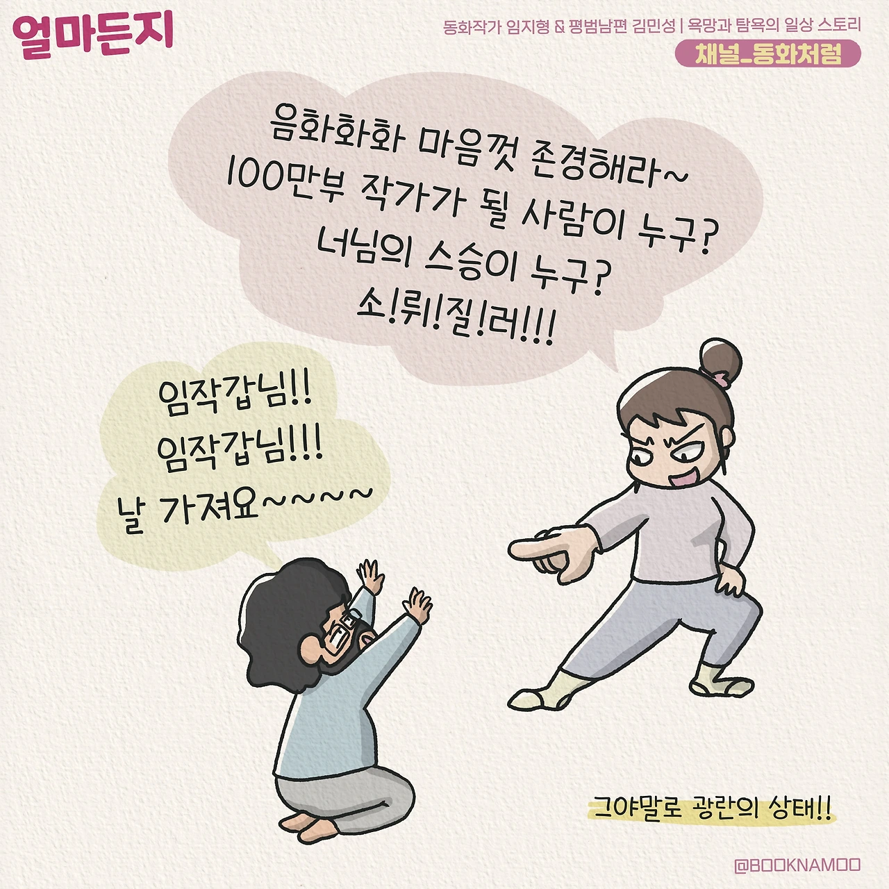 임작갑의 책이 독자들에게 더 많이 사랑받는다면, 임작갑이 독자들에게 더 많이 사랑받는 책을 쓴다면, 얼마든지 설거지도 하고, 바닥도 닦고, 음쓰도 버리고 하겠다. 그래서 계속 좀 까불고, 덜 진지하게 낄낄거리고, 좀 유치하게 투닥거리면서 앞으로 앞으로 갈 생각이다. 임작갑 페이스 메이커 하려면 체력과 능력을 부지런히 키워야 하겠다. 이게 제일 쉽지 않다. 췟!