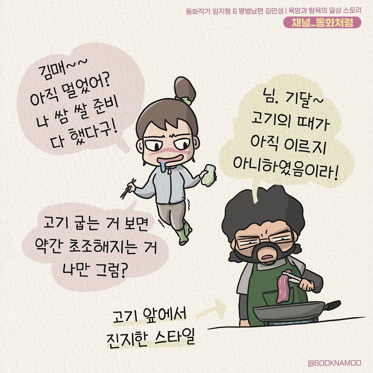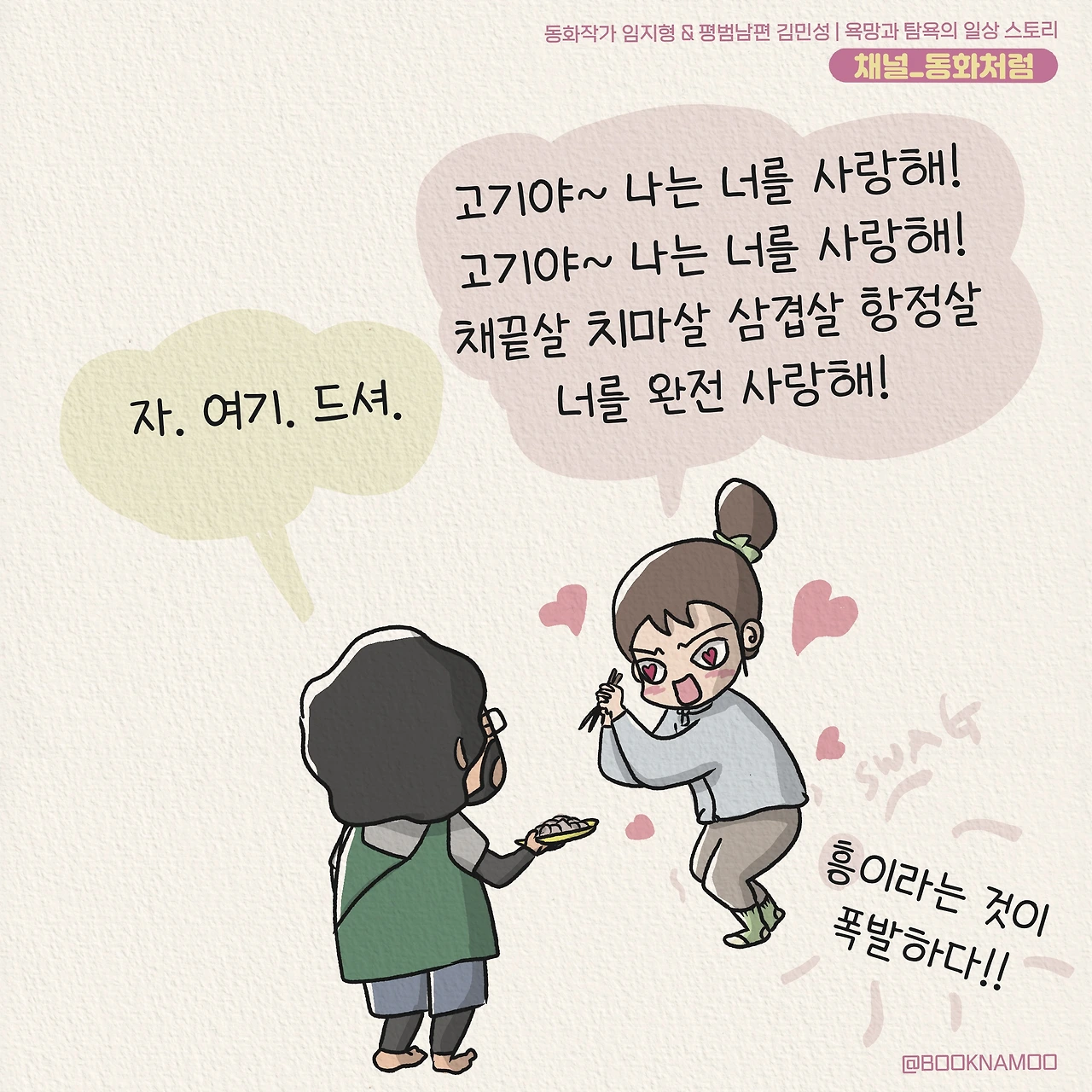 임작갑이 사랑을 고백하더라.물론 나 말고고기에게.밤늦게 고기를 내놓으라는 임작갑.다행(?)스럽게 마트 문 닫기 전이라서가서 고기 사 와서구워다 진상했다.고기 앞에서흥이라는 것이 폭발하셔서춤까지 추는 모습에어이 털렸지만 웃을 수밖에.맛있게 잘 먹고 아프지 말아라.그 마음뿐이었다.