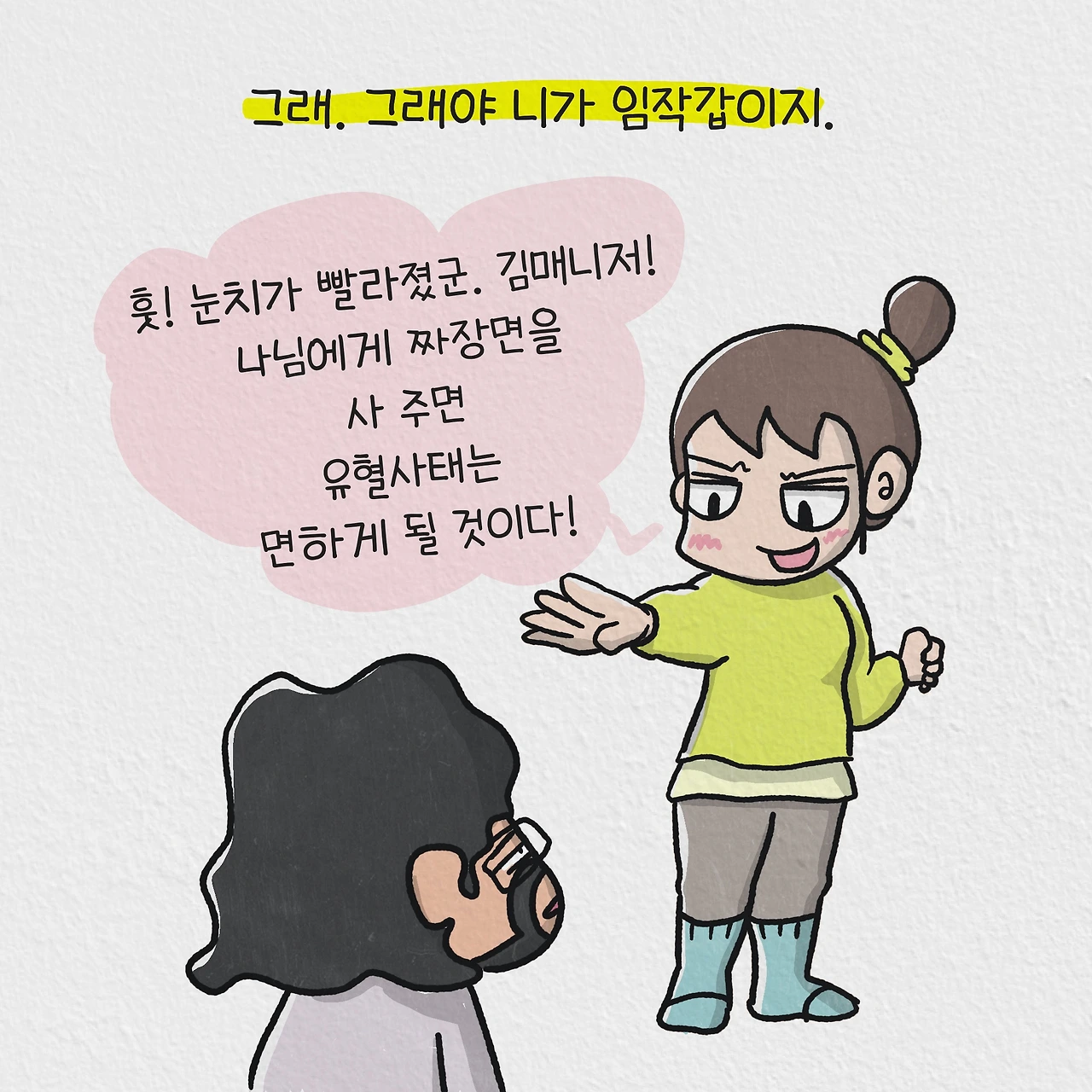 “김매니저. 나 방금 어땠어? 면치기 제대로 하지 않았어?
