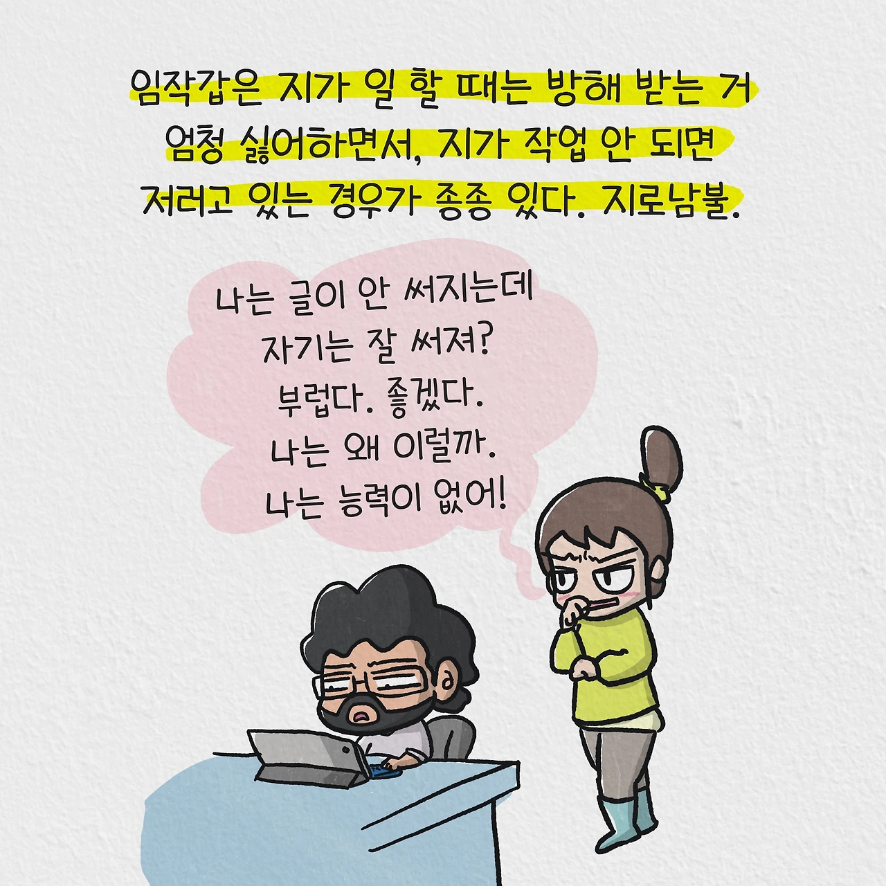 남편이 글 노동 잘 되면 불만스러운.