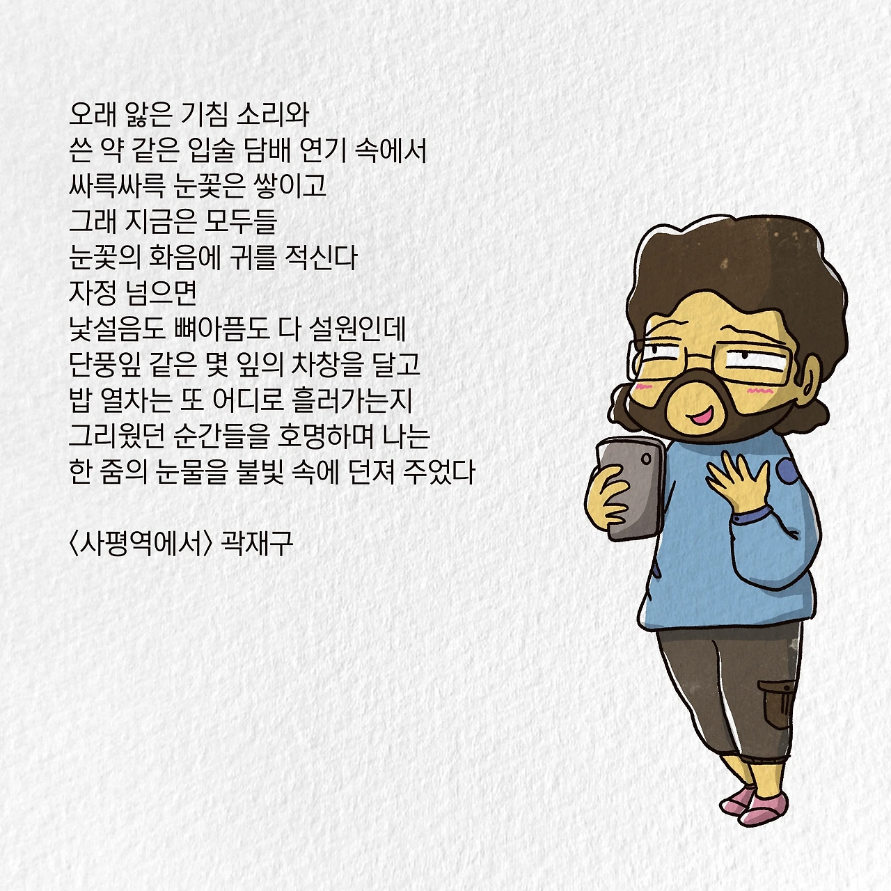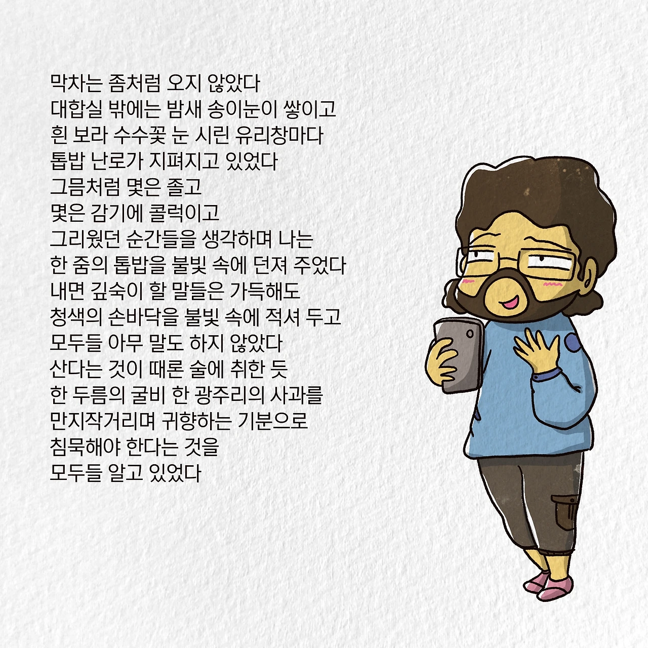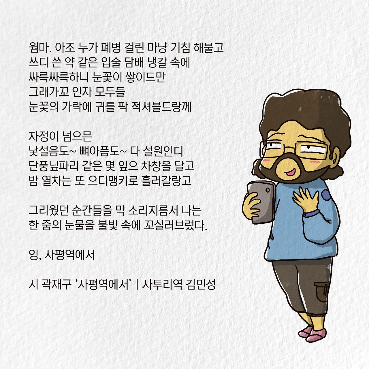 내가 잎새주 한 잔 들고 ‘잉, 사평역에서’를 읊는 동안.