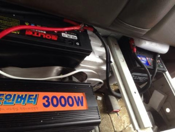 이렇게 인버터와 배터리들. 차 안에 두꺼비 집이 생겼다. 테스트를 해보기 위해서 커피포트로 물을 끓였더니 된다. 이제 진짜 부족한 게 없는 푸드트럭이다. 계속해서 발전하는 푸드트럭을 보니 처음에는 갖춰진 것도 없이 어떻게 장사를 했나 싶다. 부산에서 울산으로 가는 시간까지 생각하니 빠듯할 거 같아서 장사를 하러 울산으로 출발했다.