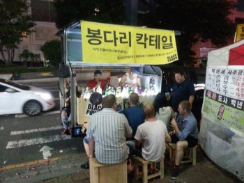 센스 있는 잘 생긴 친구는 "Too expensive man." 이라며 기분 좋은 웃음을 짓고 매일 장사하냐 물으며 갔다. USA 커플들도 한잔 사 먹고 갔다가 괜찮았는지 다시 와서 사 먹길 반복. 결국은 자리를 잡고 앉아 마시기 시작하신다.