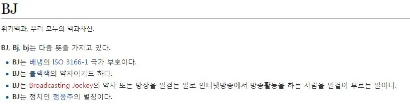 BJ의 3번째 의미. (블랙잭 아니고요. 정치인 정봉주의 별칭 아니고요..)