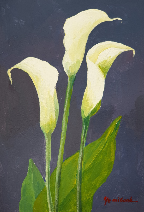 하얀 칼라 꽃 그리기