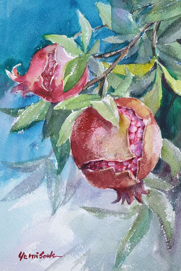 오랜만에 석류 열매를 그렸다.