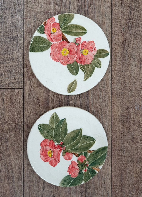 도자기 물감으로 동백꽃을 그렸다.
