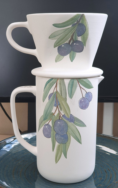 올리브 열매 커피 드리퍼 그리기