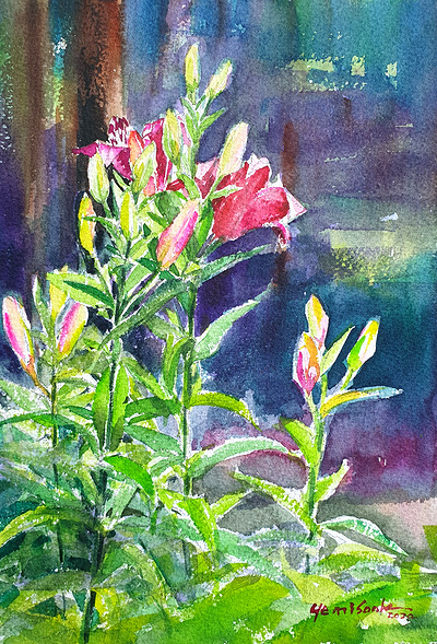 붉은 꽃을 피우기 위한 꽃봉오리들이