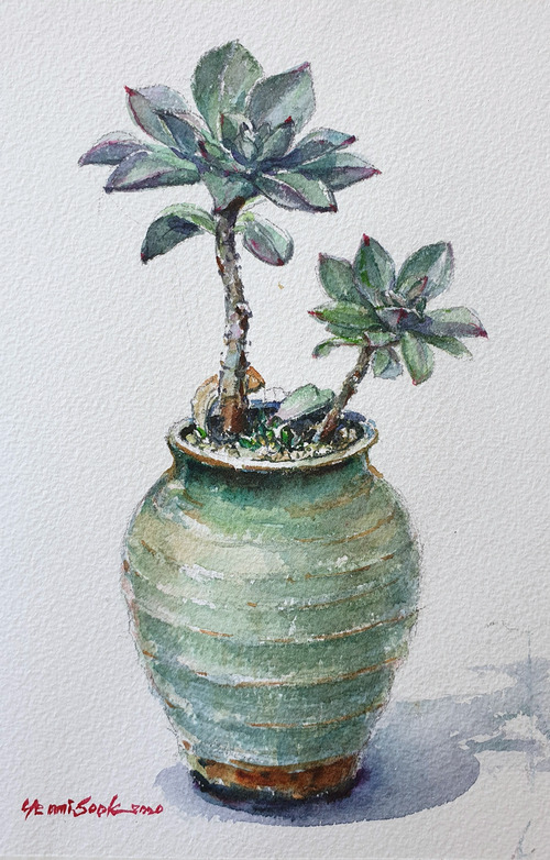 다육 화분 그리기