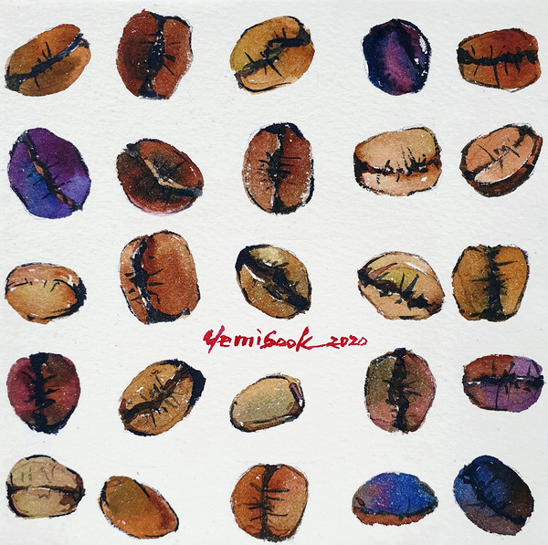 커피 원두를 하나씩 그리기 시작한다.