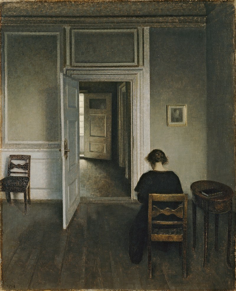 함메르쇠이가 그린 집 안에서 인물은 정물 같다. 한동안 있는 자리에서 발을 떼지 않을 의자나 협탁 같기도 하고 응시를 수련하는 듯한 액자, 이도 저도 아니면 열린(혹은 닫힌) 방문, 미동도 하지 않을 방들 사이의 벽 1,2,3 같다. 그는 유독 이 방에서 저 방을 들여다보거나 내다보는 시선으로 그림을 그렸는데 그래서인지 열린 방문을 통해 이어진 방들은 자주 길처럼 보인다. 그 속에 머무는 사람도 이 순간만큼은 길 위에 멈춰 지도라도 살피는 사람 같다.