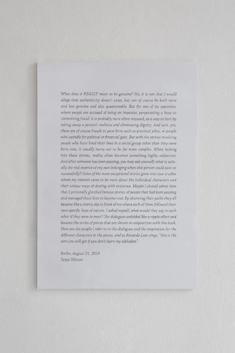 Actually my intention was never to make a work about ’passing’, it just happened that all the stories ended up tip-toeing around that term. When I describe the term to others, I usually describe it as: a person's ability to be perceived as a member of an identity group other than the one of their origin. Wikipedia and other encyclopedias describe it as: a person's ability to be perceived as a member of an identity group different from their own. I always thought that is rude, who are they to decide who someone else is?