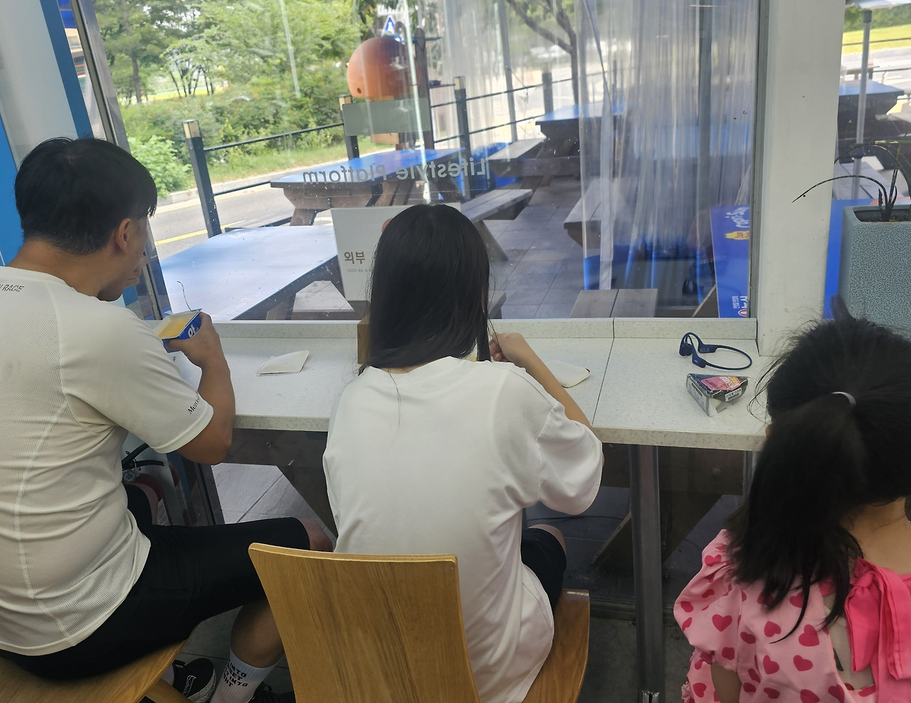 마무리 걷기까지 마치고 남편과 아이들을 만났다.