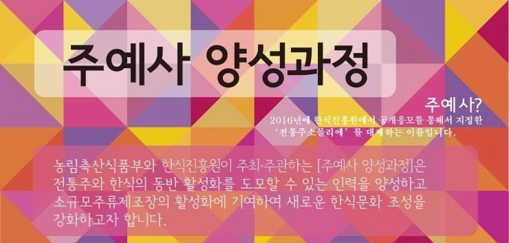 그건 바로 전통주 소믈리에로서의 역량을 기를 수 있는 "주예사 양성 과정"이다.
