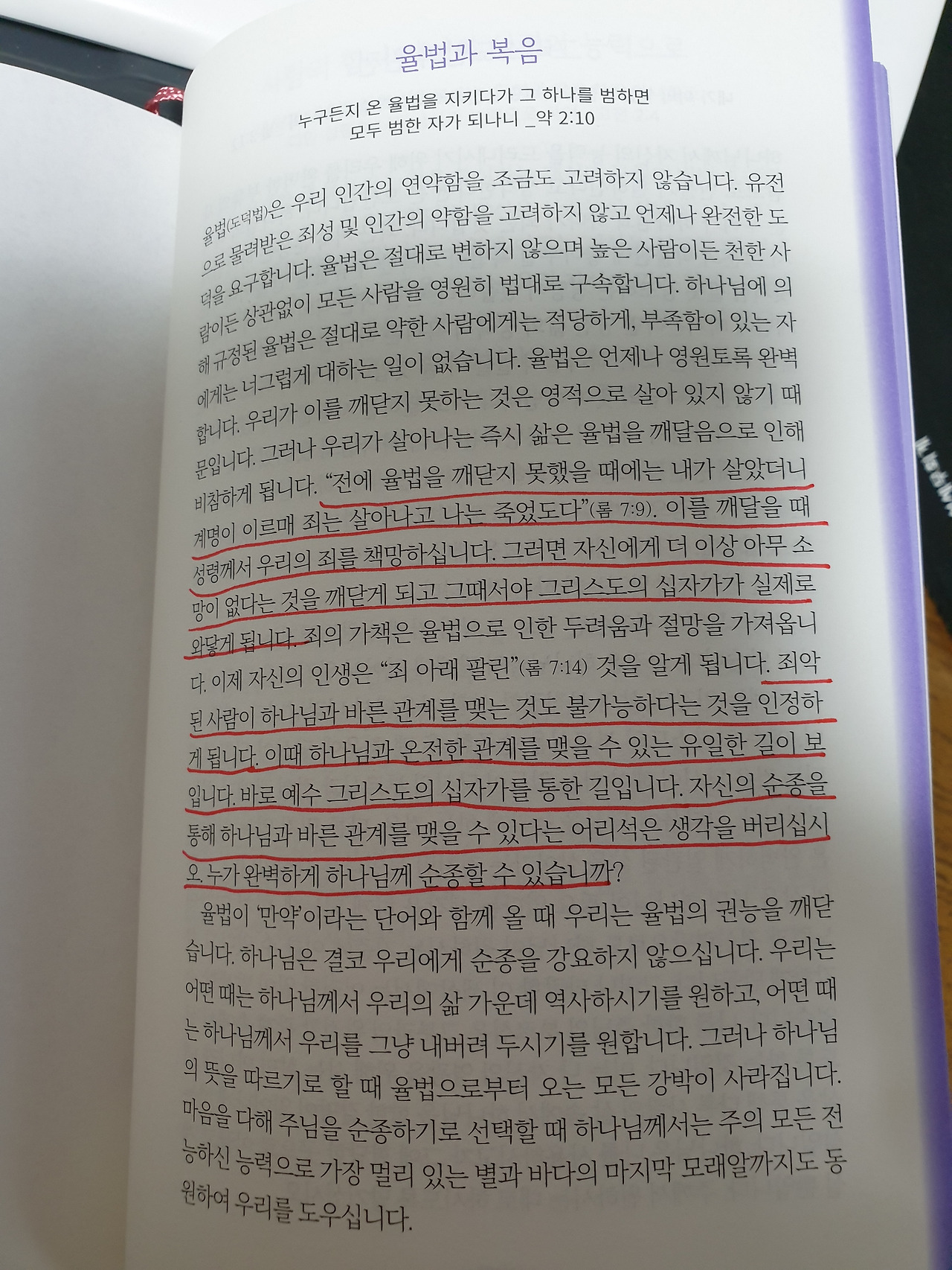 죄악 된 사람이 하나님과 바른 관계를 맺는 것도 불가능하다는 것을 인정하게 됩니다. 이때 하나님과 온전한 관계를 맺을 수 있는 유일한 길이 보입니다. 바로 예수 그리스도의 십자가를 통한 길입니다. 자신의 순종을 통해 하나님과 바른 관계를 맺을 수 있다는 어리석은 생각을 버리십시오. 누가 완벽하게 하나님께 순종할 수 있습니까?