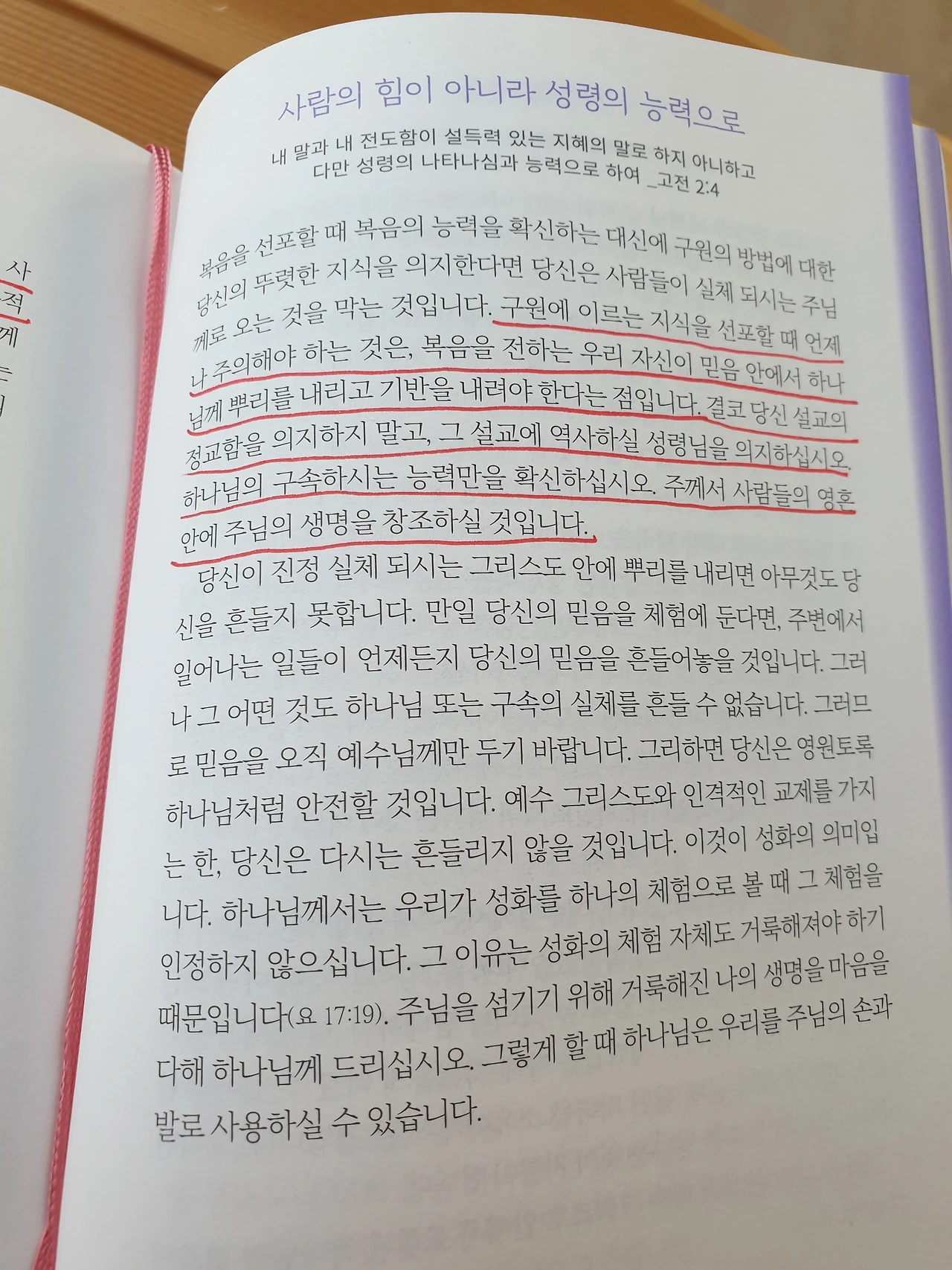 구원에 이르는 지식을 선포할 때 언제나 주의해야 할 것은, 복음을 전하는 우리 자신이 믿음 안에서 하나님께 뿌리를 내리고 기반을 내려야 한다는 점입니다. 결코 당신 설교의 정교함을 의지하지 말고, 그 설교에 역사하실 성령님을 의지하십시오. 하나님의 구속하시는 능력만을 확신하십시오. 주께서 사람들의 영혼 안에 주님의 생명을 창조하실 것입니다. -오스왈드 챔버스 365 묵상집 중에서 발췌-