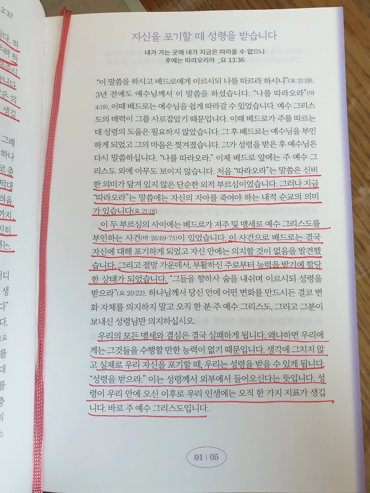 우리의 모든 맹세와 결심은 결국 실패하게 됩니다. 왜냐하면 우리에게는 그것들을 수행할 만한 능력이 없기 때문입니다. 생각에 그치지 않고 실제로 우리 자신을 포기할 때, 우리는 성령을 받을 수 있게 됩니다. "성령을 받으라." 이는 성령께서 외부에서 들어오신다는 뜻입니다. 성령이 우리 안에 오신 이후로 우리 인생에는 오직 한 가지 지표가 생깁니다. 바로 주 예수 그리스도입니다. -오스왈드 챔버스 365 묵상집 중에서 발췌-