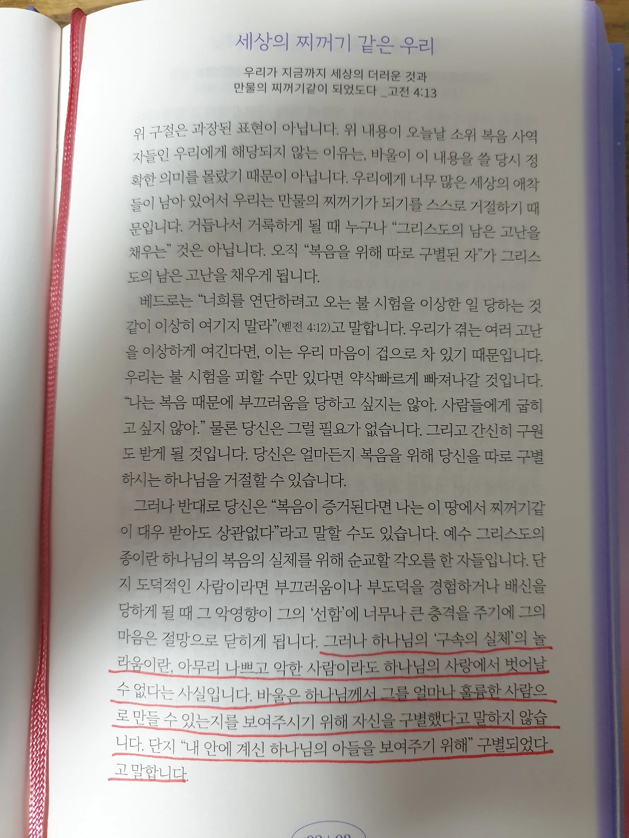 우리가 지금까지 세상의 더러운 것과 만물의 찌꺼기같이 되었도다 (고전 4:13)