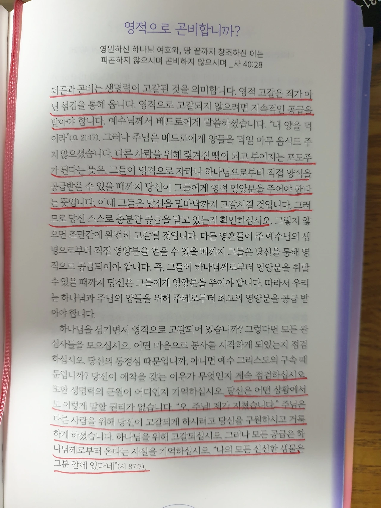 영적으로 고갈되지 않으려면 지속적인 공급을 받아야 합니다.