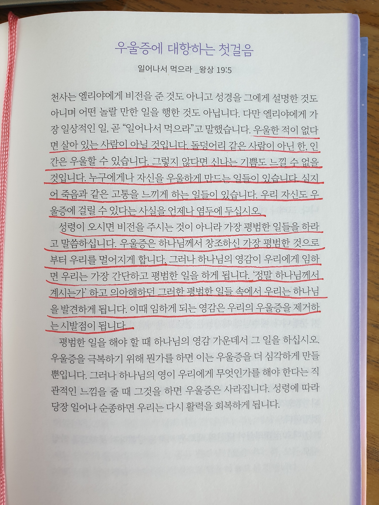 우울한 적이 없다면 살아 있는 사람이 아닐 것입니다. 돌덩어리 같은 사람이 아닌 한, 인간은 우울할 수 있습니다. 그렇지 않다면 신나는 기쁨도 느낄 수 없을 것입니다. 누구에게나 자신을 우울하게 만드는 일들이 있습니다. 심지어 죽음과 같은 고통을 느끼게 하는 일들이 있습니다. 우리 자신도 우울증에 걸릴 수 있다는 사실을 언제나 염두해 두십시오.