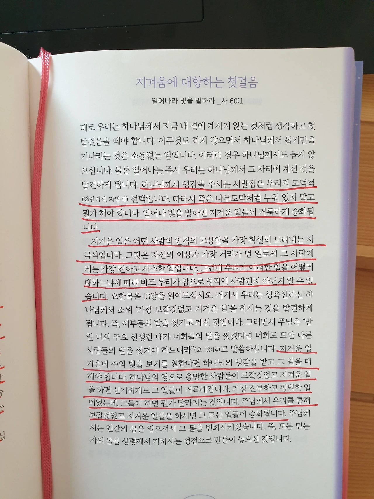 하나님께서 영감을 주시는 시발점은 우리의 도덕적(전인격적, 자발적) 선택입니다. 따라서 죽은 나무토막처럼 누워 있지 말고 뭔가 해야 합니다. 일어나 빛을 발하면 지겨운 일들이 거룩하게 승화됩니다.