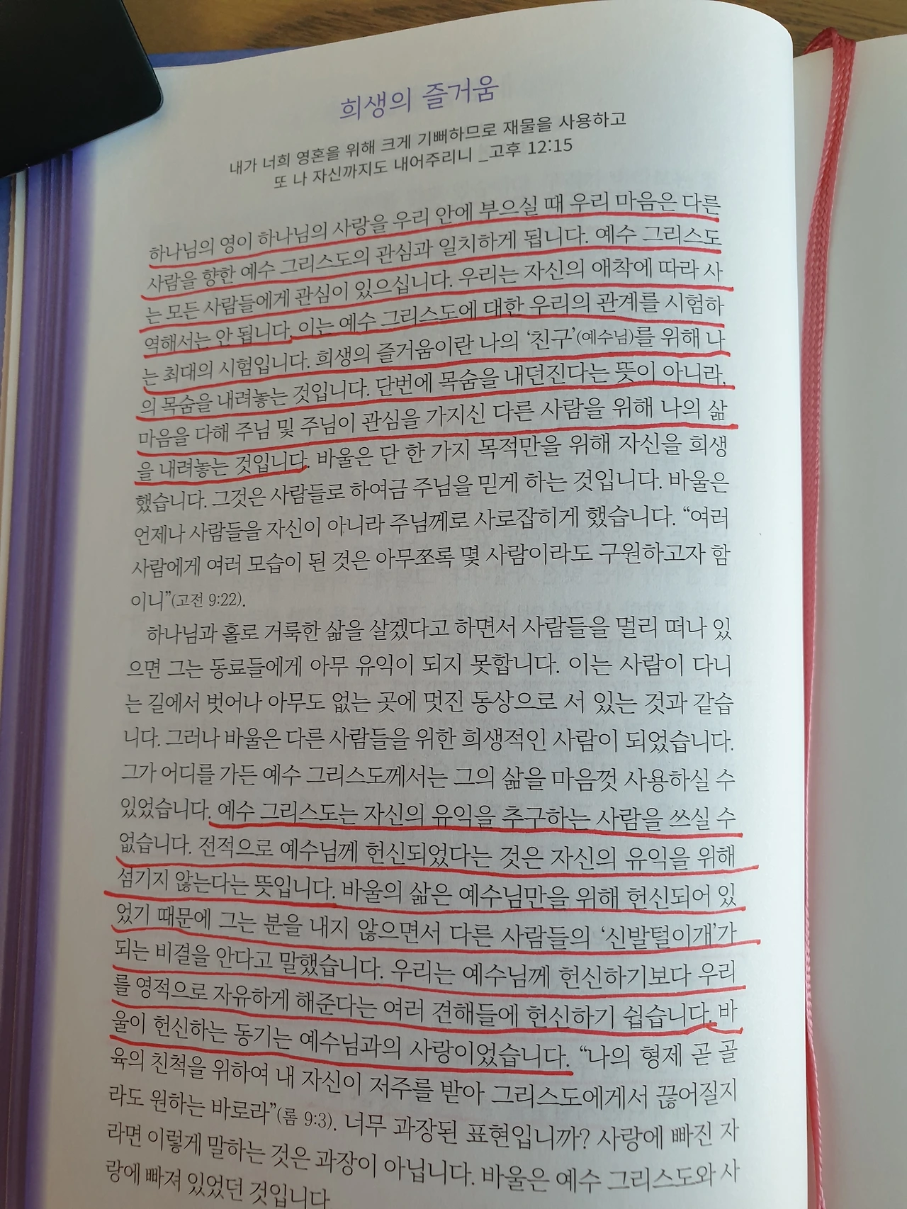 내가 너희 영혼을 위해 크게 기뻐하므로 재물을 사용하고 또 나 자신까지도 내어주리니 (고후 12:15)