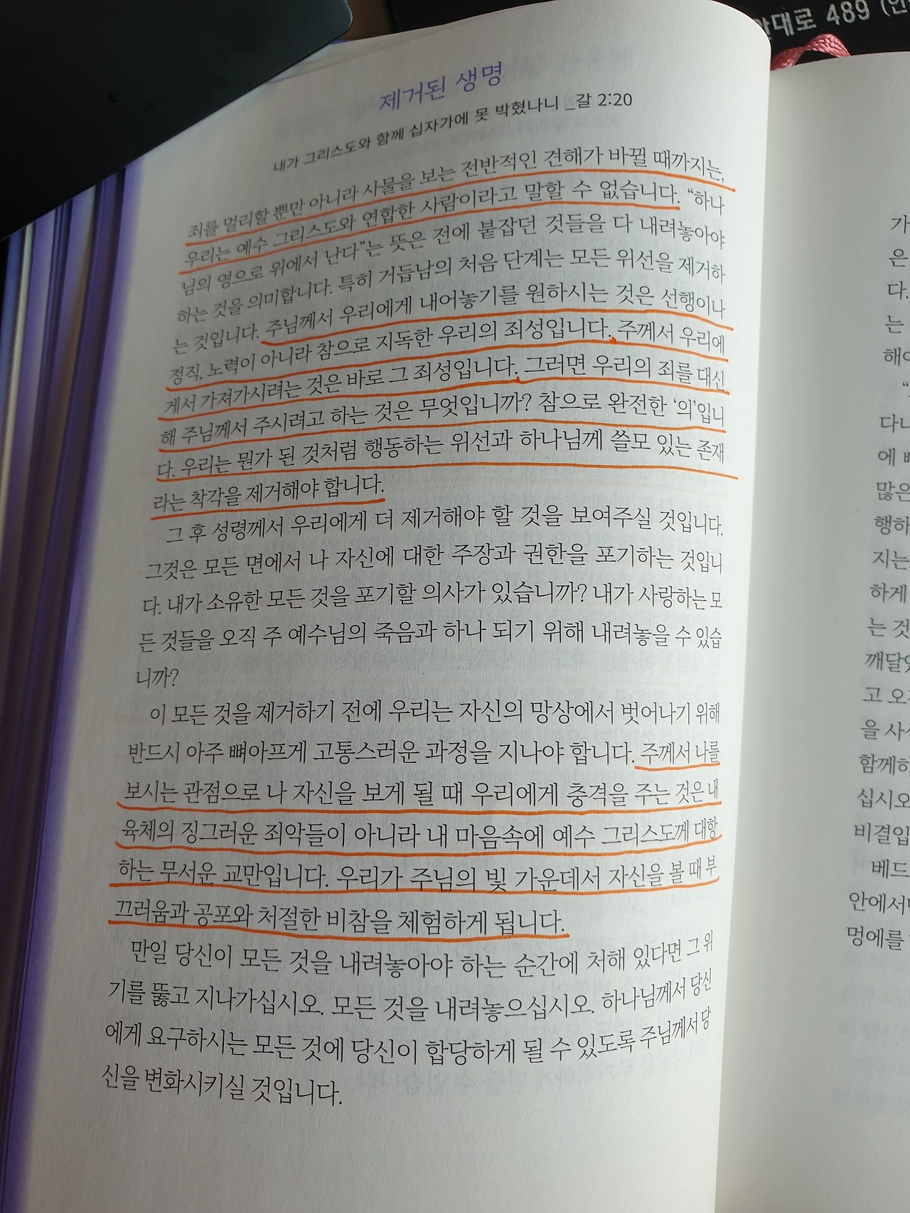 죄를 멀리할 뿐만 아니라 사물을 보는 전반적인 견해가 바뀔 때까지는, 우리는 예수 그리스도와 연합한 사람이라고 말할 수 없습니다. 주님께서 우리에게 내어놓기를 원하시는 것은 선행이나 정직, 노력이 아니라 참으로 지독한 우리의 죄성입니다. 주께서 우리에게서 가져가시려는 것은 바로 그 죄성입니다. 그러면 우리의 죄를 대신해 주님께서 주시려고 하는 것은 무엇입니까? 참으로 완전한 '의'입니다. 우리는 뭔가 된 것처럼 행동하는 위선과 하나님께 쓸모 있는 존재라는 착각을 제거해야 합니다.