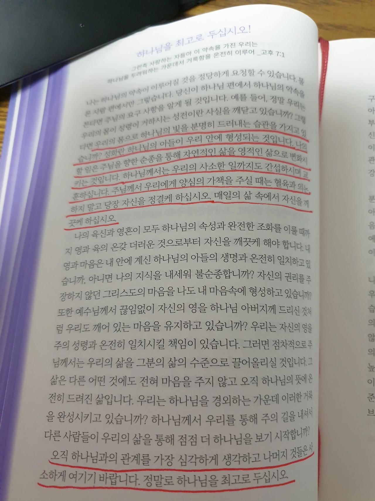 하나님을 두려워하는 가운데서 거룩함을 온전히 이루어(고후 7:1)