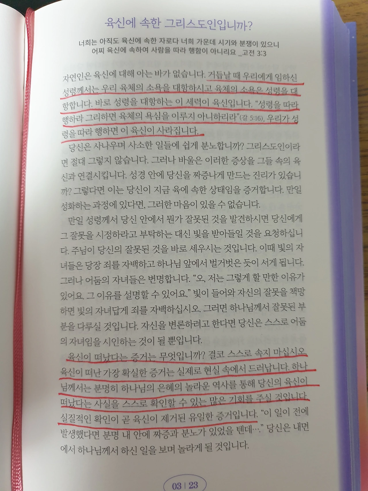 나의 모든 육체의 소욕을 거슬러, 성령의 능력으로 이기고 싶다.