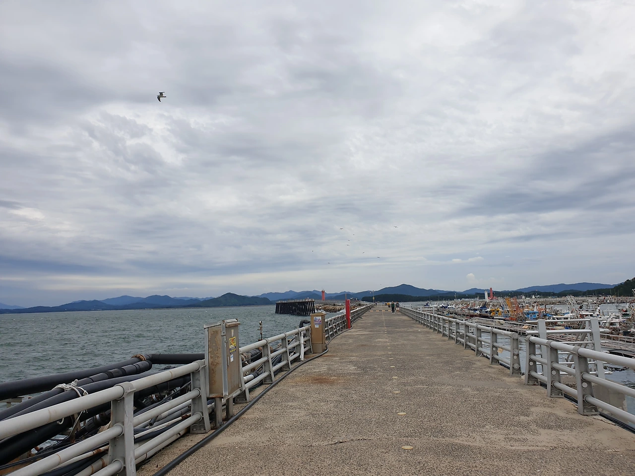 등대로 향하는 방파제늘 중심으로 우편에는 배가 정착돼 있는 잔잔한 파도가 보였고, 좌편에는 찰랑이는 깊은 파도가 일렁이는 깊은 바다를 볼 수 있었다.
