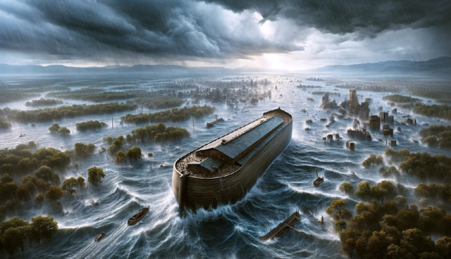 하나님께서는 지면에 살아있는 모든 존재를 다 쓸어버렸다. 오직 살아 남은 것은 노아와 방주에 들어간 그의 가족들과 짐승들뿐이었다.