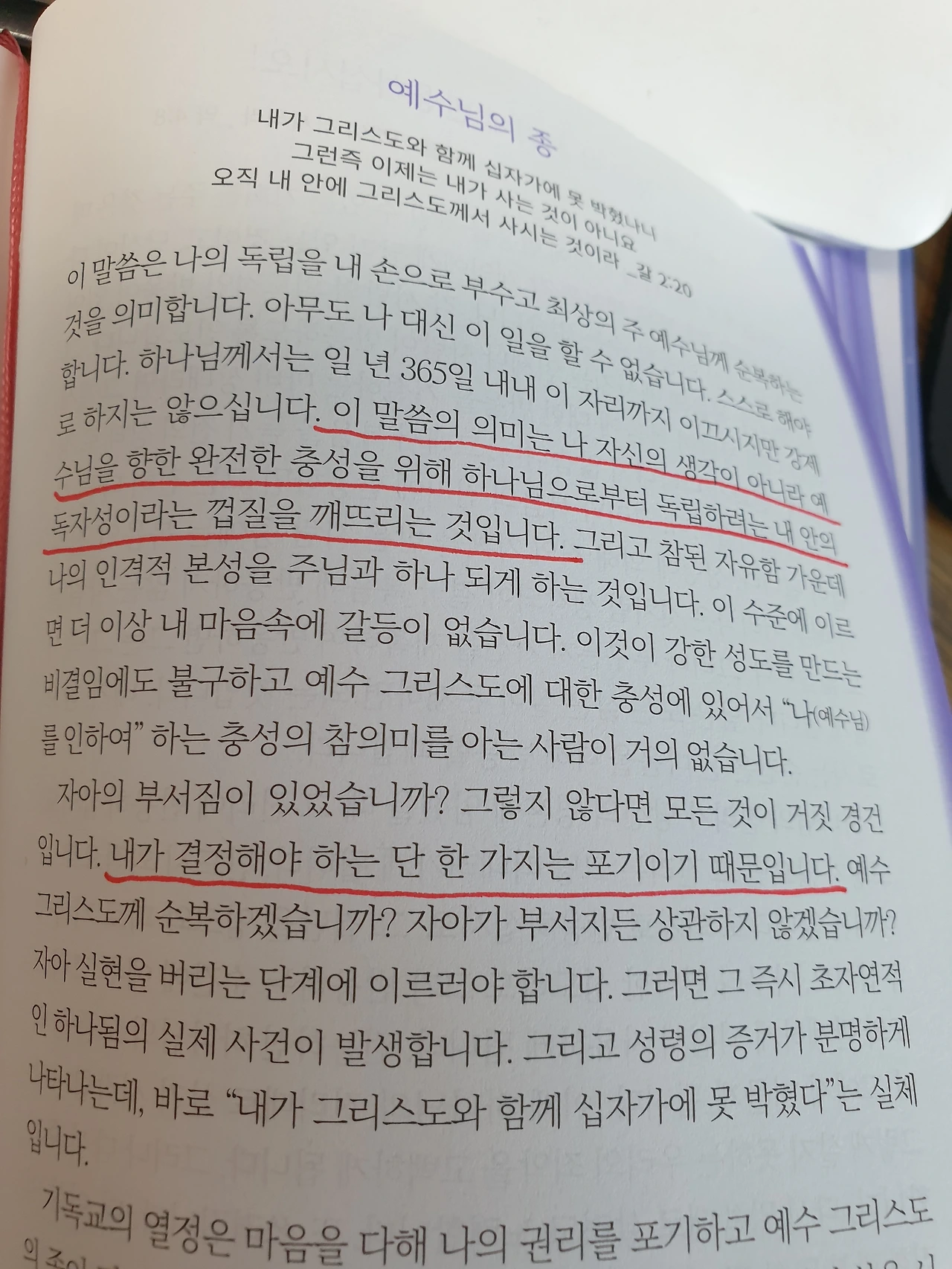'내가 그리스도와 함께 십자가에 못 박혔나니 그런즉 이제는 내가 사는 것이 아니요오직 내 안에 그리스도께서 사시는 것이라' (갈 2:20)