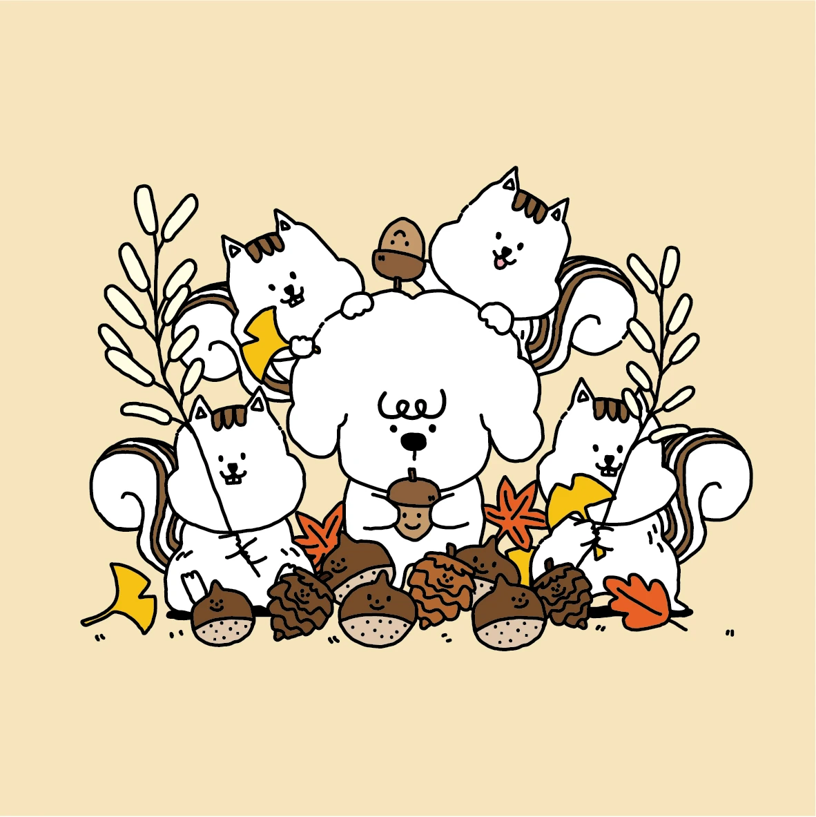가을엔 유독 다람쥐와 낙엽, 은행나무 등이 생각이 나면서 뭉식이와 함께 놀고 있는 다람이 형제들을 그려보았습니다.