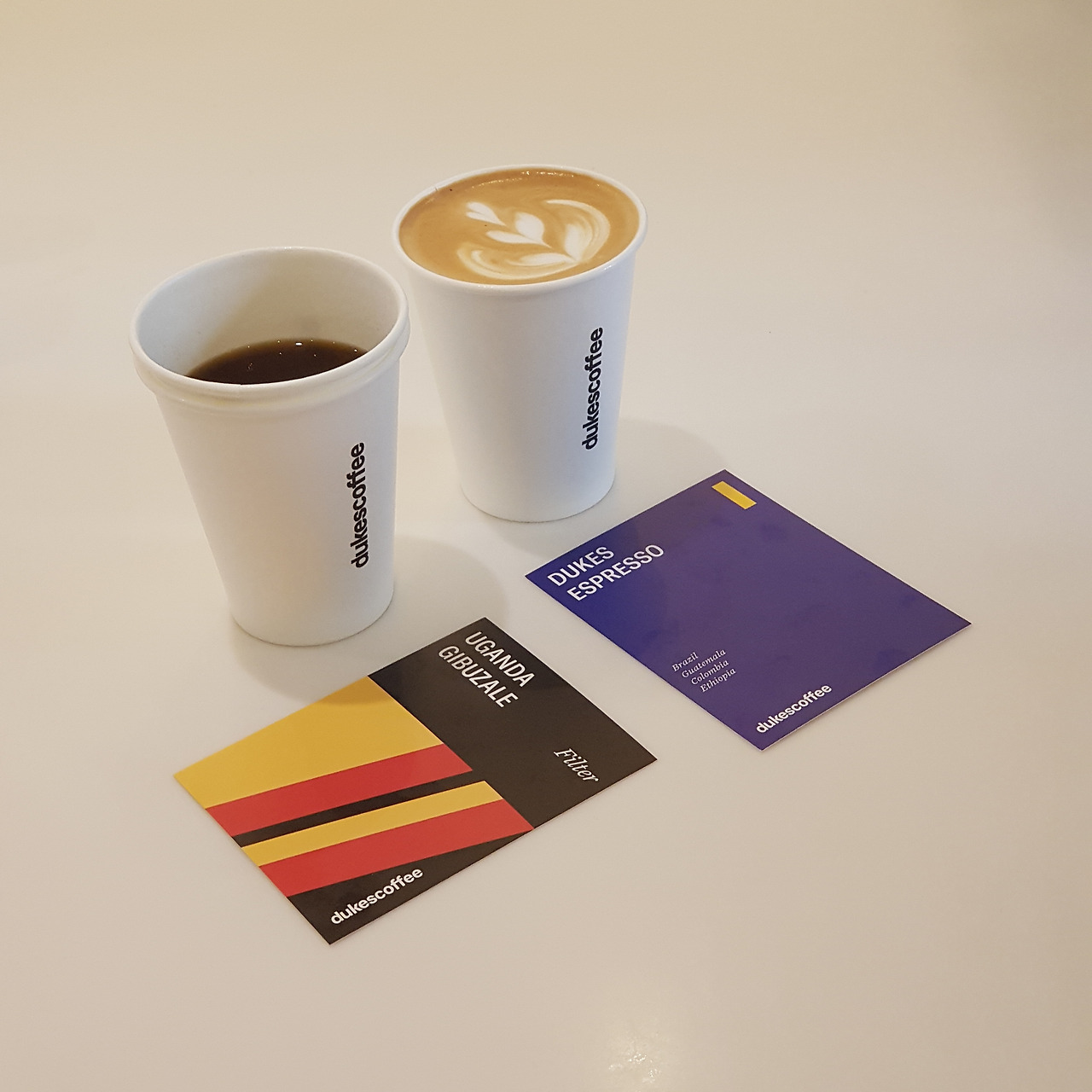 우간다 기부잘레 블랙(과일향이 돋보인다)과, 듁스 에스프레소 라떼.