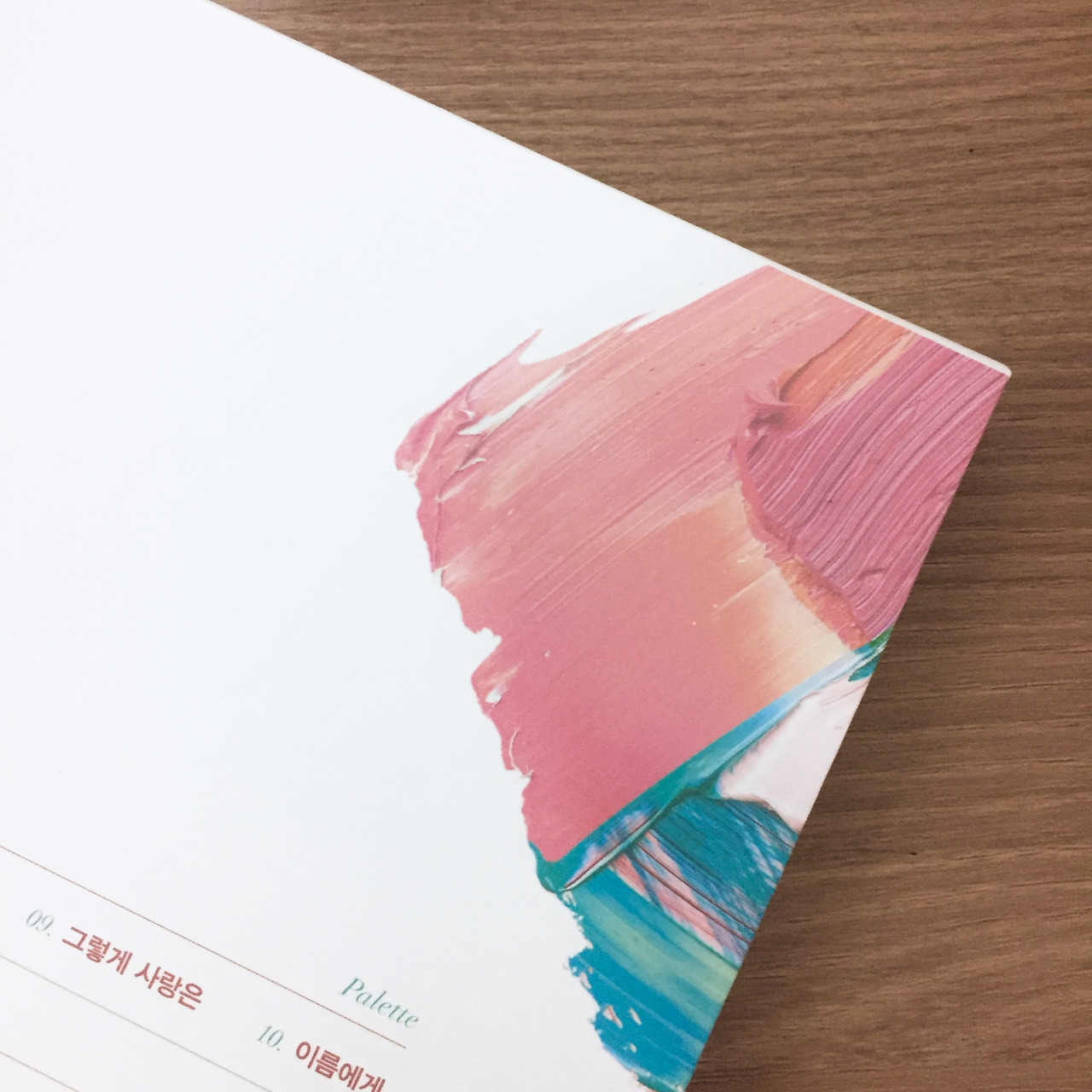 하지만 내 마음은 편해지기는커녕 뒤늦게라도 아이유에게 작은 보답을 해야 할 것만 같았다. 그날 바로 나는 알라딘에 들렀다. 그해 봄에 발매된 «라일락» 앨범을 샀다. 은혜 갚는 까치의 심정으로. 조성모의 «아시나요» 이후로 내 돈 내고 산 첫 앨범이었다. 만듦새가 정성을 들인 양장본 같았다. 앨범 안에는 단지 CD와 가사집만 들어있는 게 아니었다. 화보집과 포토 카드, 증명사진도 포함되어 있었다. 러시안 인형처럼 까도 까도 나오는 선물에 나는 아이처럼 손뼉을 쳤다. 다음날 한달음에 알라딘으로 다시 달려갔다. 이번에는 진열대에서 «챗셔» 앨범을 집어 들었다. 그리고 오랜만에 어린이날을 앞두고 «팔레트» 앨범을 나에게 선물한 것이다.