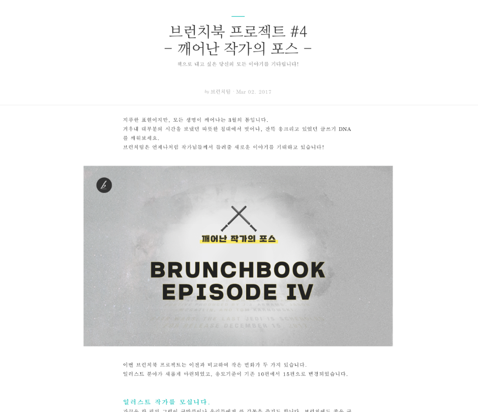 게다가 광고성 글은 엄격히 금지된다. 신고제도도 두고 있다. 순수하게 글에 목마른 이들만 오라는 것이다. 글쓰기를 갈망하면서 직업이 있거나, 돈에 무관심한 이들에게는 더할 나위 없는 공간이다. 이게 브런치의 영업전략이다.