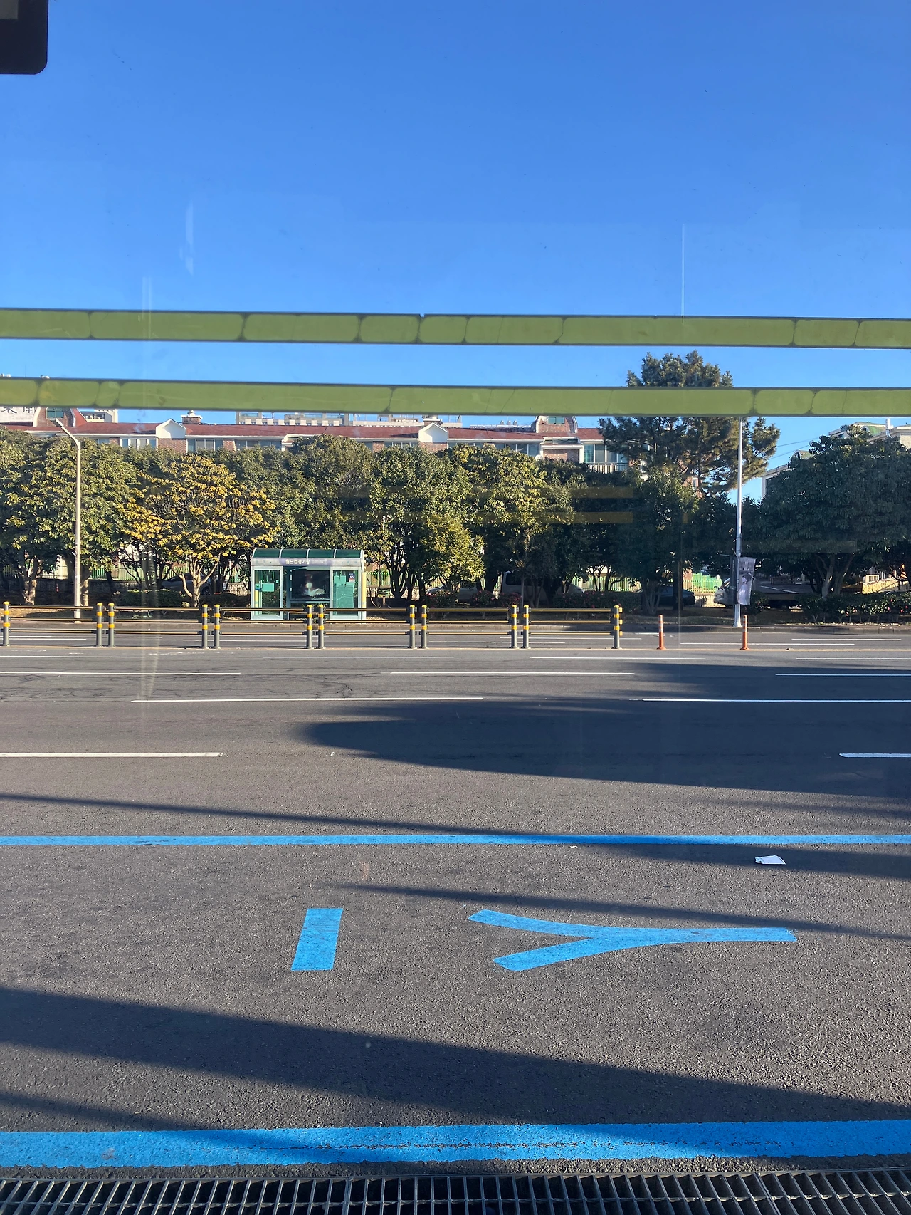 숙소에서 일찍 나와 올레길 5코스의 시작점인 남원포구로 가는 버스를 정류장에서 기다립니다.