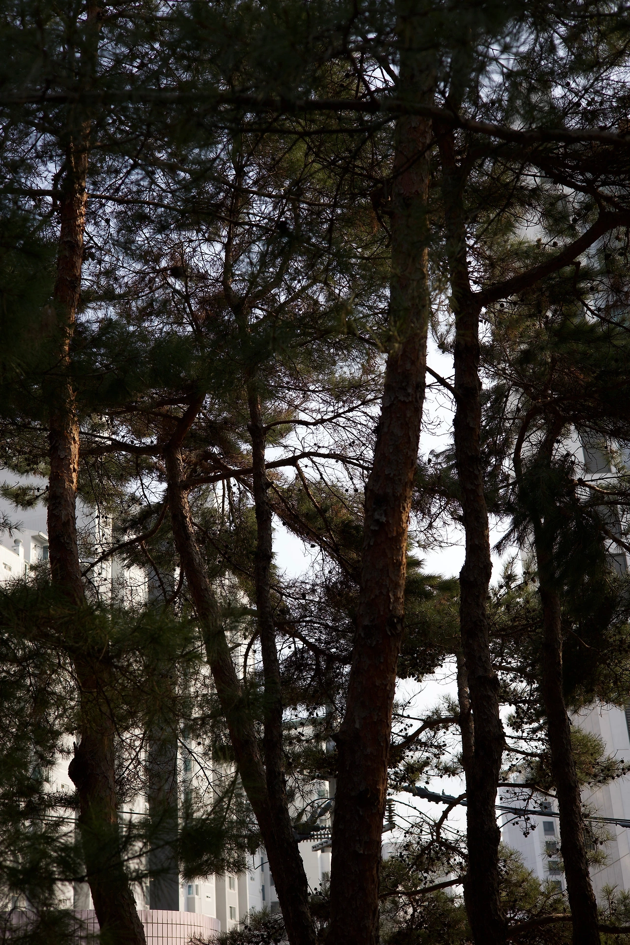 나무들이 자기 영역을 지키며 스스로 우뚝 서 있는 모습을 지켜봅니다. 가까이 다가가 귀 기울여보지만 아무 소리도 들리지 않네요.