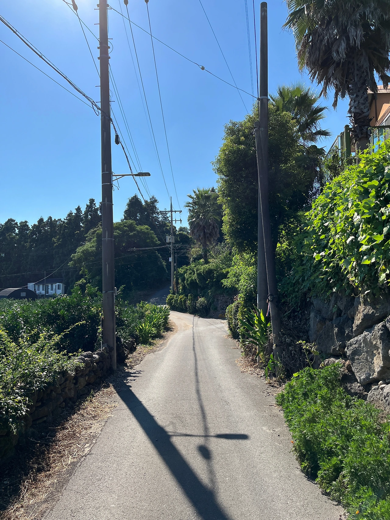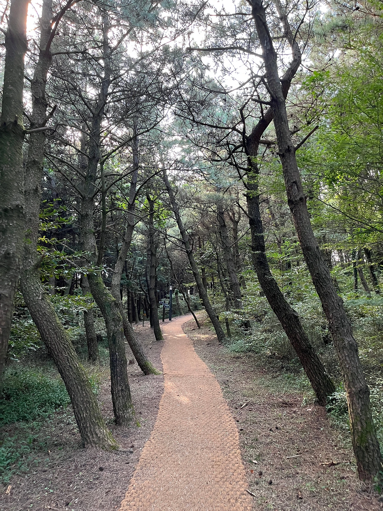 그렇게 얼마나 걸었을까요. 한참 후 두 갈래로 나뉘는 길목에서 저와 다른 방향으로 개는 지나갑니다. 이때다 싶어 잰걸음으로 멀찍이 개에게서 떨어져 이동합니다.