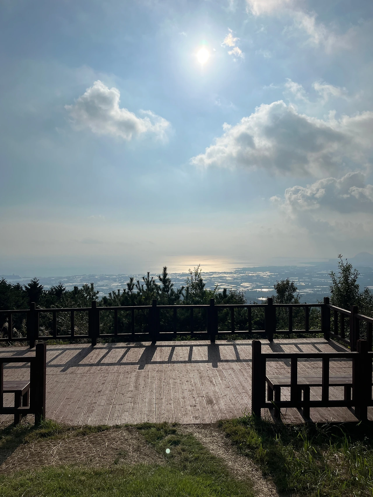 올해 1월에 왔던 고근산으로 다시 왔습니다. 올레 7-1코스 안에 포함되어 있네요. 저 멀리 한라산이 보입니다. 저 멀고도 웅장한 곳을 갔다 왔다는 게 새삼 믿기지가 않네요.