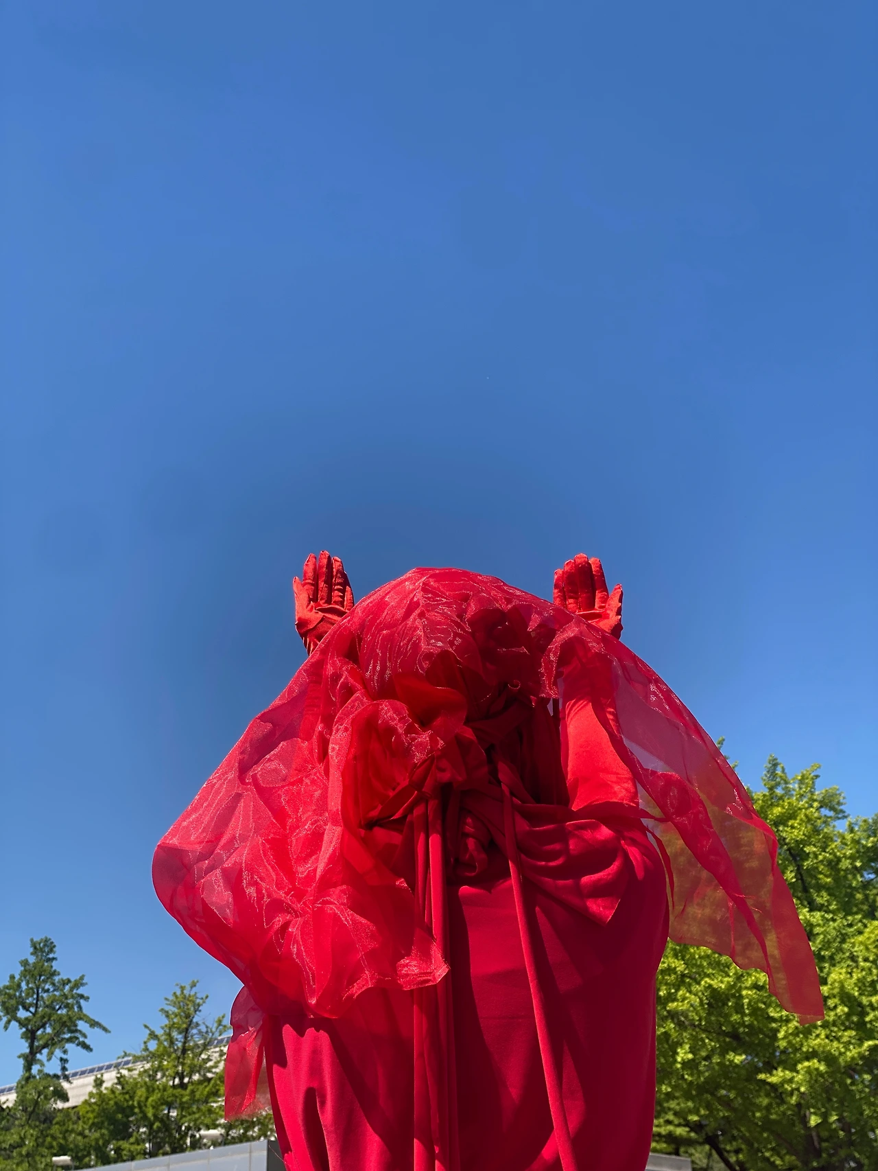 해가 중천을 지날 때쯤, 나는 온몸에 새빨간 천을 두르고 있었다. 코끝부터 발끝까지 온통 빨간색으로 뒤덮였고, 머리에는 면사포처럼 생긴 빨간 천이 올려졌다. 온몸에 피를 두른 것 같기도 하고, 어떤 정령을 몸속으로 들이는 것 같기도 하고, 악마와 결혼하는(?) 듯한 묘한 기분이 들었다. 준비를 마친 붉은 정령들은 서서히 원을 그리며 한 자리에 모였다. 왼 손바닥은 위로, 오른 손바닥은 아래로 향하게 편 뒤 팔을 벌려 원의 틈을 채웠다. 서로의 기를 나누는 시간이다. 잠시 눈을 감고 호흡을 내쉬었다. 세 번의 호흡이 이어졌다. 오롯이 나를 위한 호흡 한 번, 손바닥을 통해 연결된 우리들을 위한 호흡 한 번, 발 딛고 있는 이 지구의 온 존재를 위한 호흡 한 번.