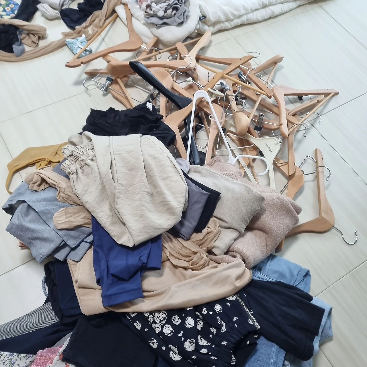 버리는 과정은 정말 힘들었는데 그래서 남은 옷이 더 소중하게 느껴져요. 특히 이제 남은 옷이 얼마 없어서 흘리지 않도록 조심하고 있어요.