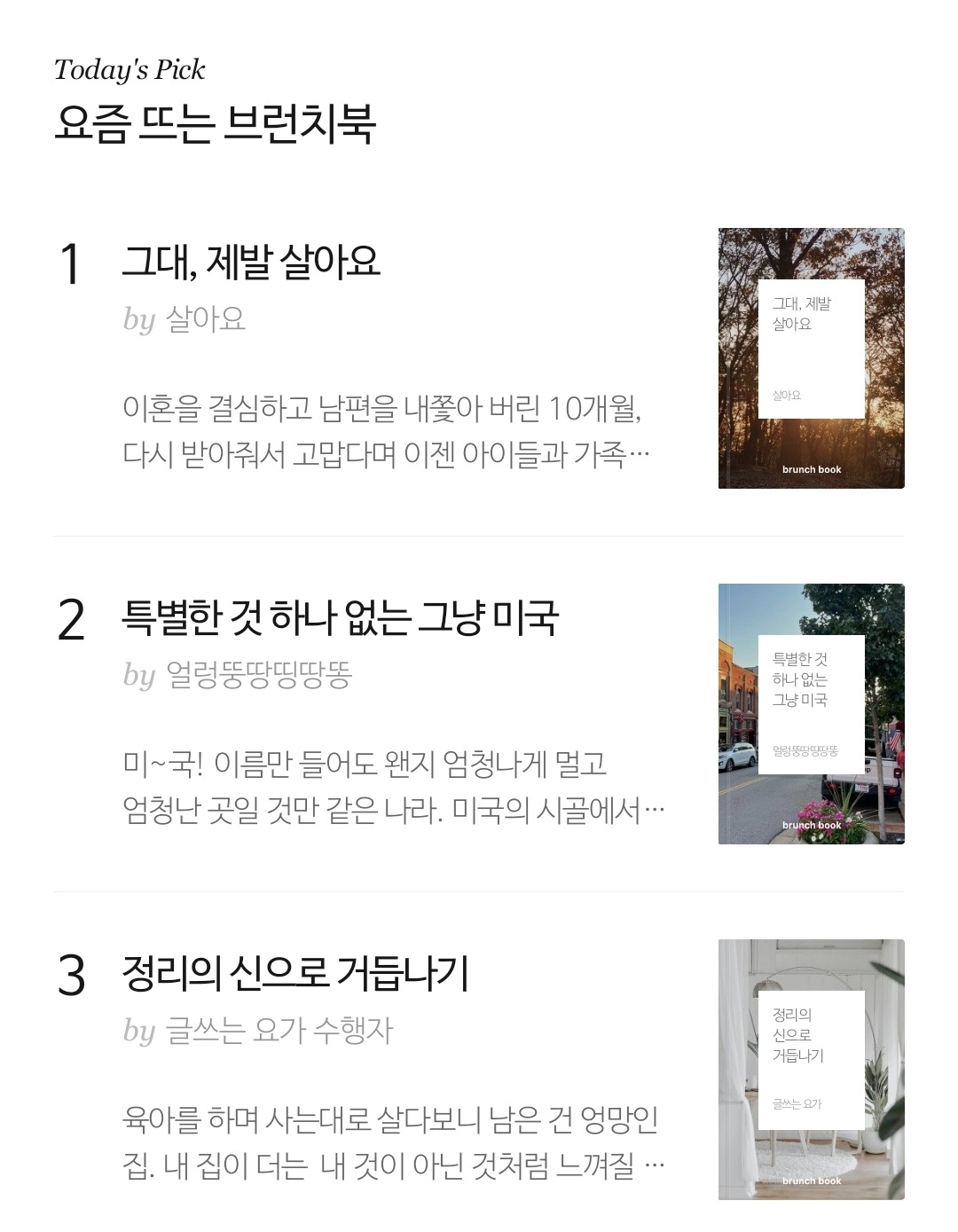 사실 지금도 제 브런치북이 요즘 뜨는 브런치북 '3위'에 올라가 있는 놀라움을.. 느끼고 있는 중이에요!